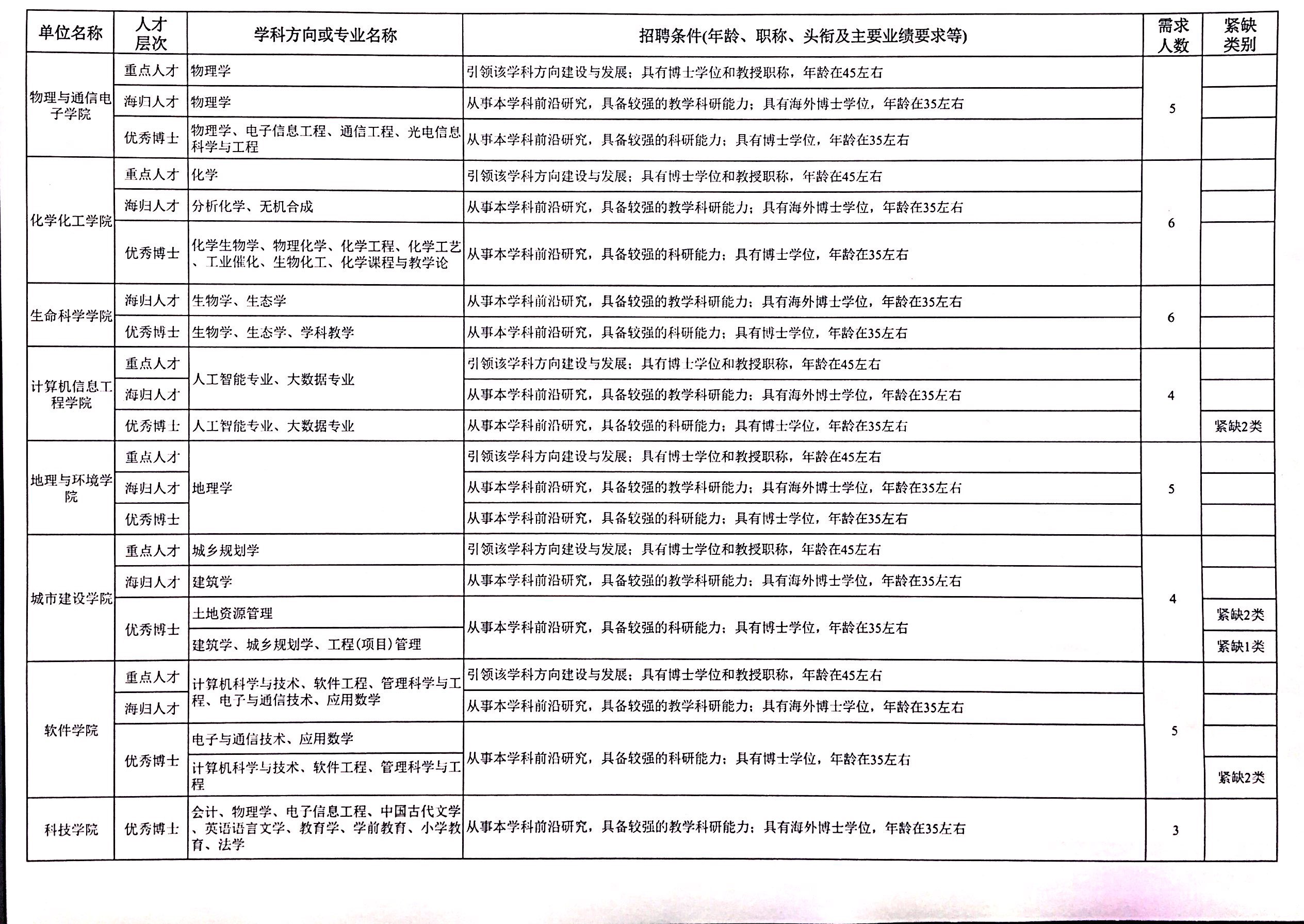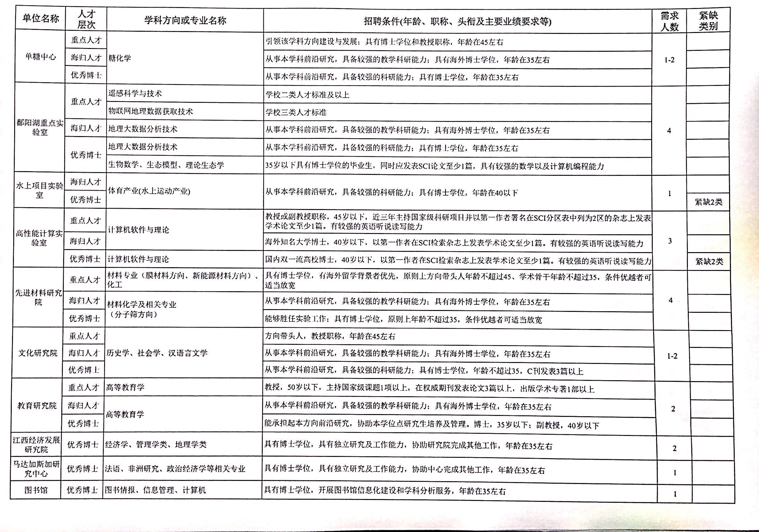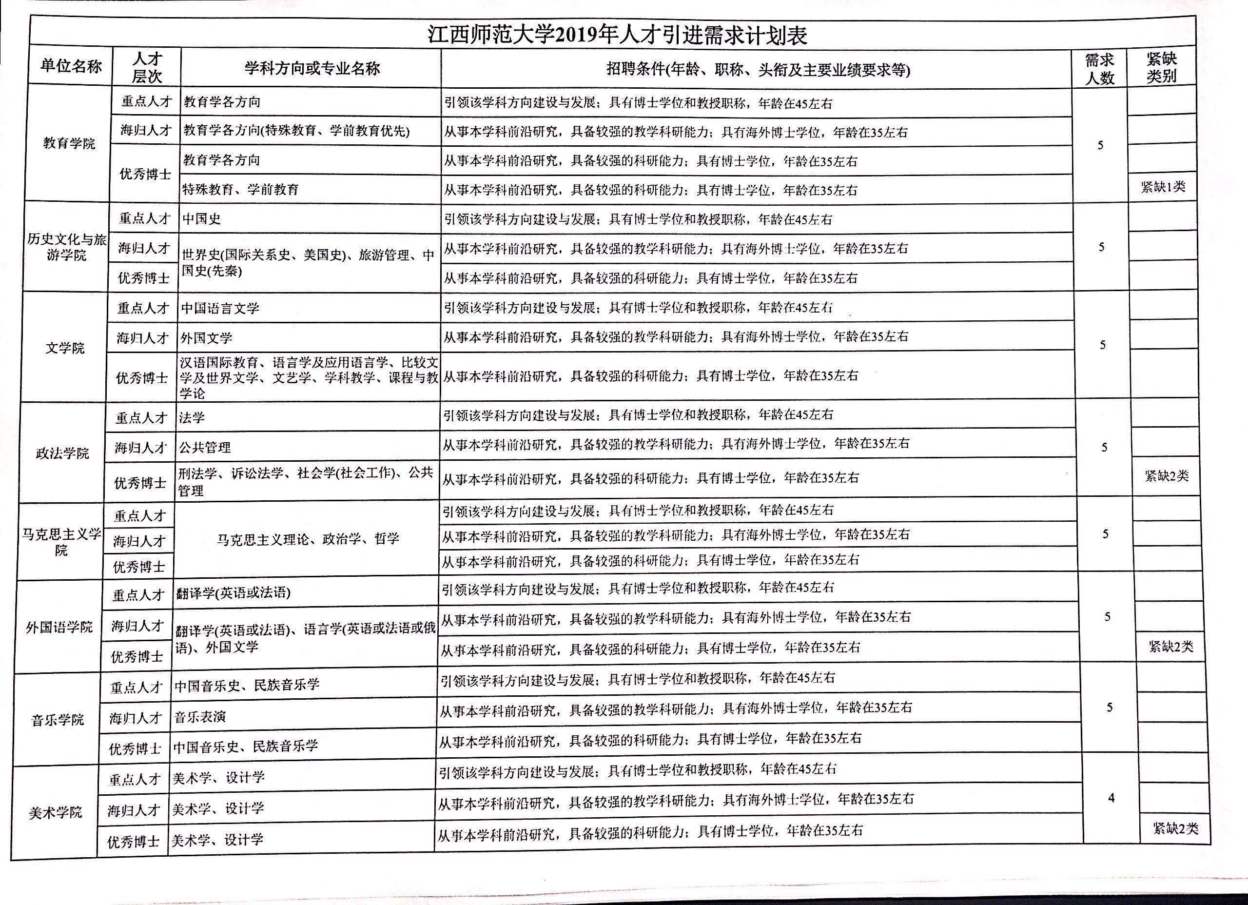 详见本公告 学 附件:江西师范大学 2019  年人才引进需求计划表( 文末)。