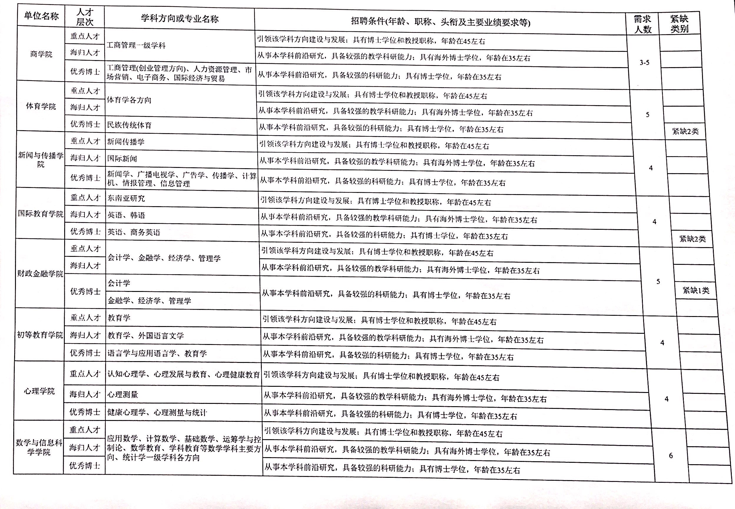 学 附件:江西师范大学 2019  年人才引进需求计划表